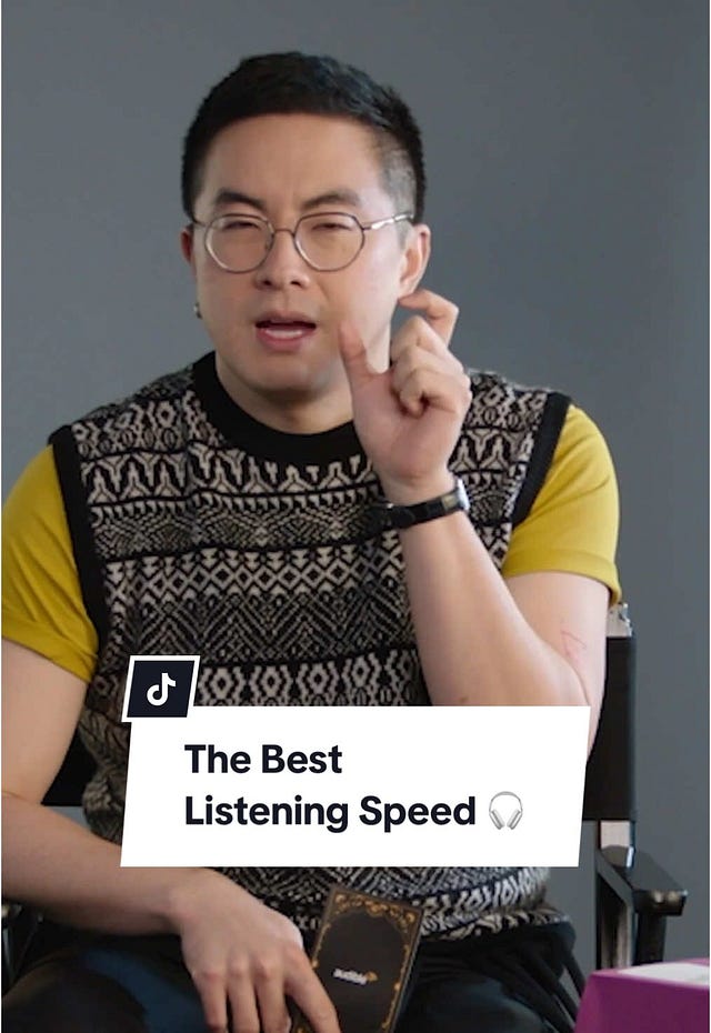The Audible ad is wild to me, because it actually could have been a good ad! It needed more people like Bowen Yang that like faster speeds so it'd be a little more balanced.